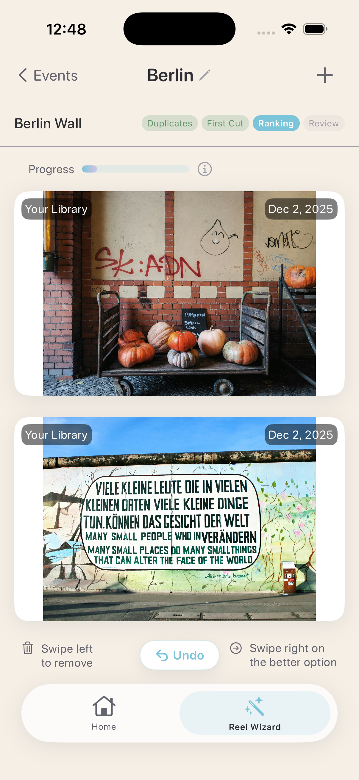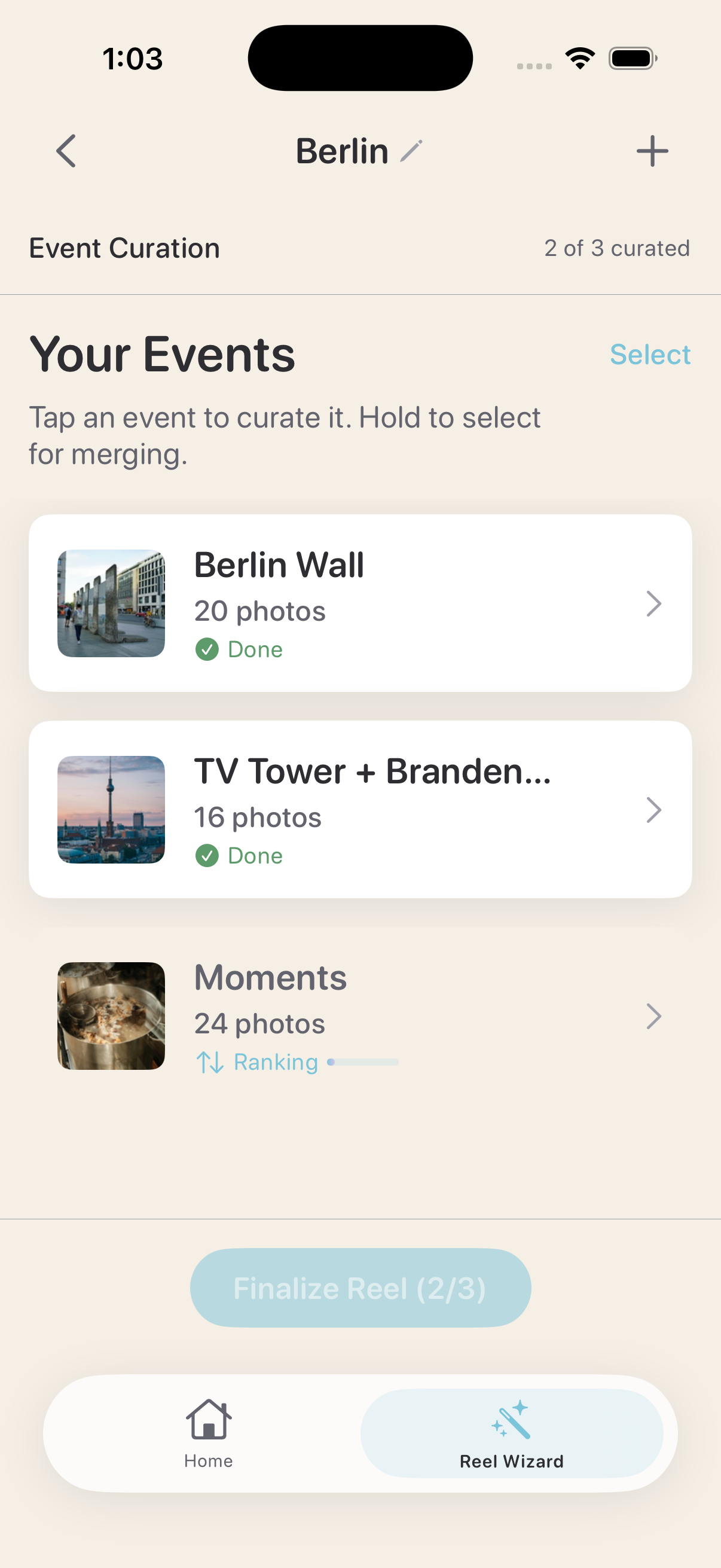 Your photos are automatically organized into events. Focus on what matters, one event at a time.