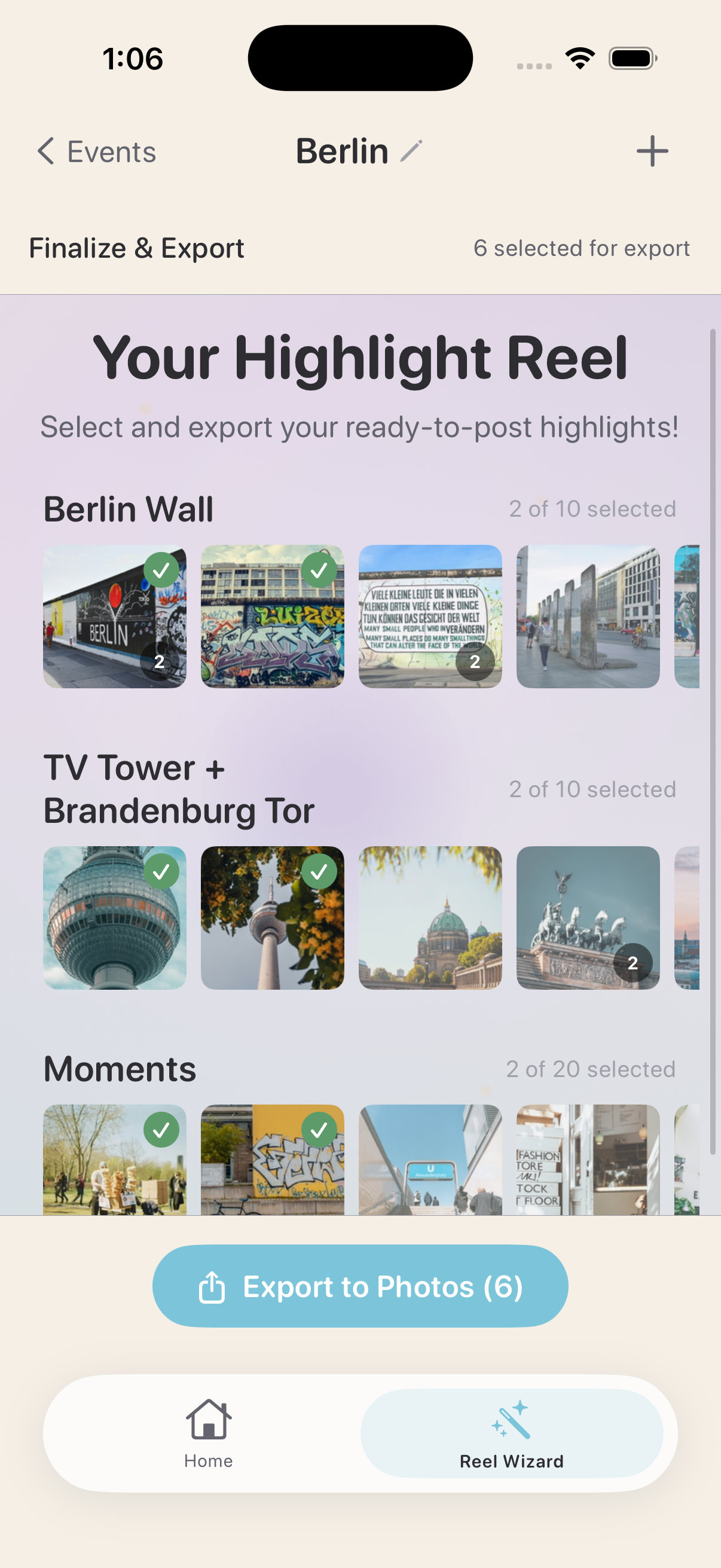 Your highlight reel, ready to share. Export directly to your Photos library.